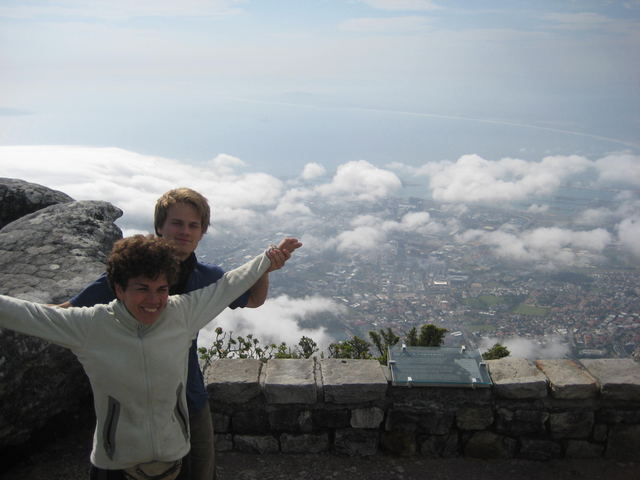Pudimos despedirnos de la vegetación Africana caminando por la curiosa Montaña de las Mesa, una de las más antiguas del mundo. Escalamos hasta la cima con algunas complicaciones ya que Mona tenía vértigo, y además hacia mucho frío, pero una vez arriba gozamos de las espectaculares vistas de la ciudad y más allá del mar. Para bajar la montaña tomamos el teleférico.