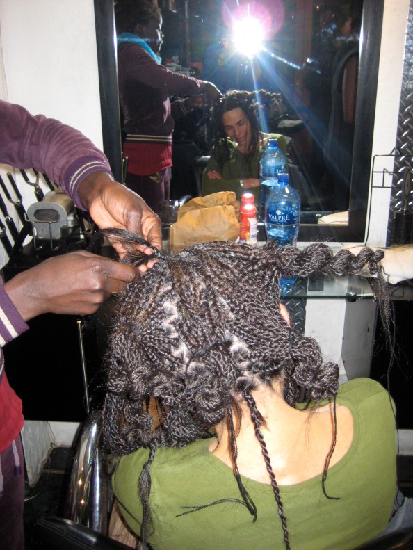 Mona se pudo despedir de los pelos “afros” de las nativas, ya que se dejó crecer el pelo y se hizo hacer unas trencitas para semejarse a las reales Reinas Africanas, pero para estar guapa se ha de sufrir, y ella no es menos ya que tuvo que estar 9h sentada en una peluquería local mientras se las hacían, pero valió la pena.