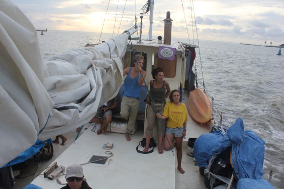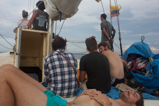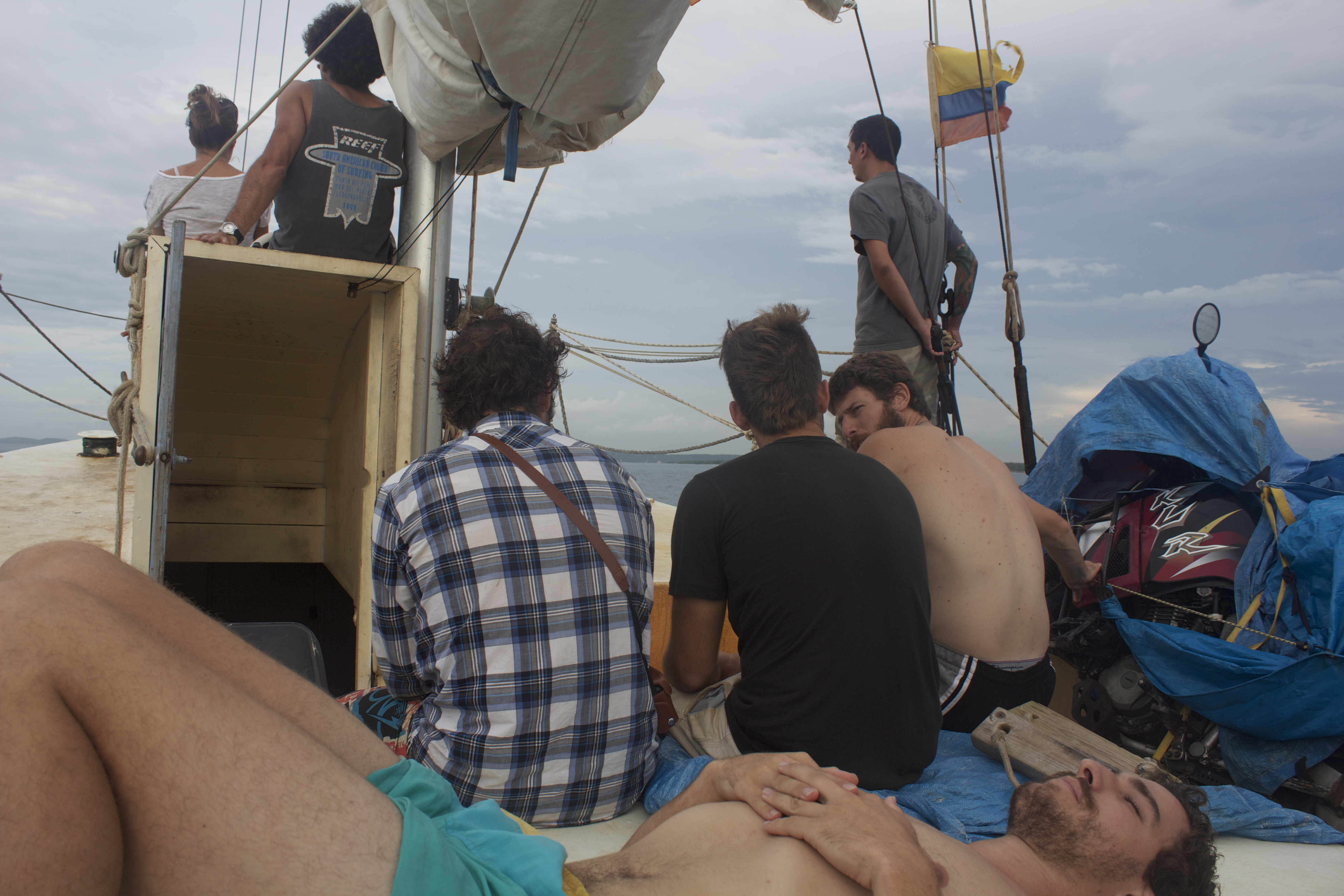 Esa mañana también nos fue comunicada la noticia de que había tormenta, alerta roja en el mar caribe y que la fecha de salida se tenía que retrasar un día. Nos ofrecieron quedarnos en el barco esa noche para no tener que pagar otra noche de hostal, así que después de pasar el día bañándonos en la playa, tomando el sol y relajándonos tal y como se hace en la costa caribe nos recogieron en la lancha para llevarnos al famoso barco que nos llevaría hasta Cartagena.