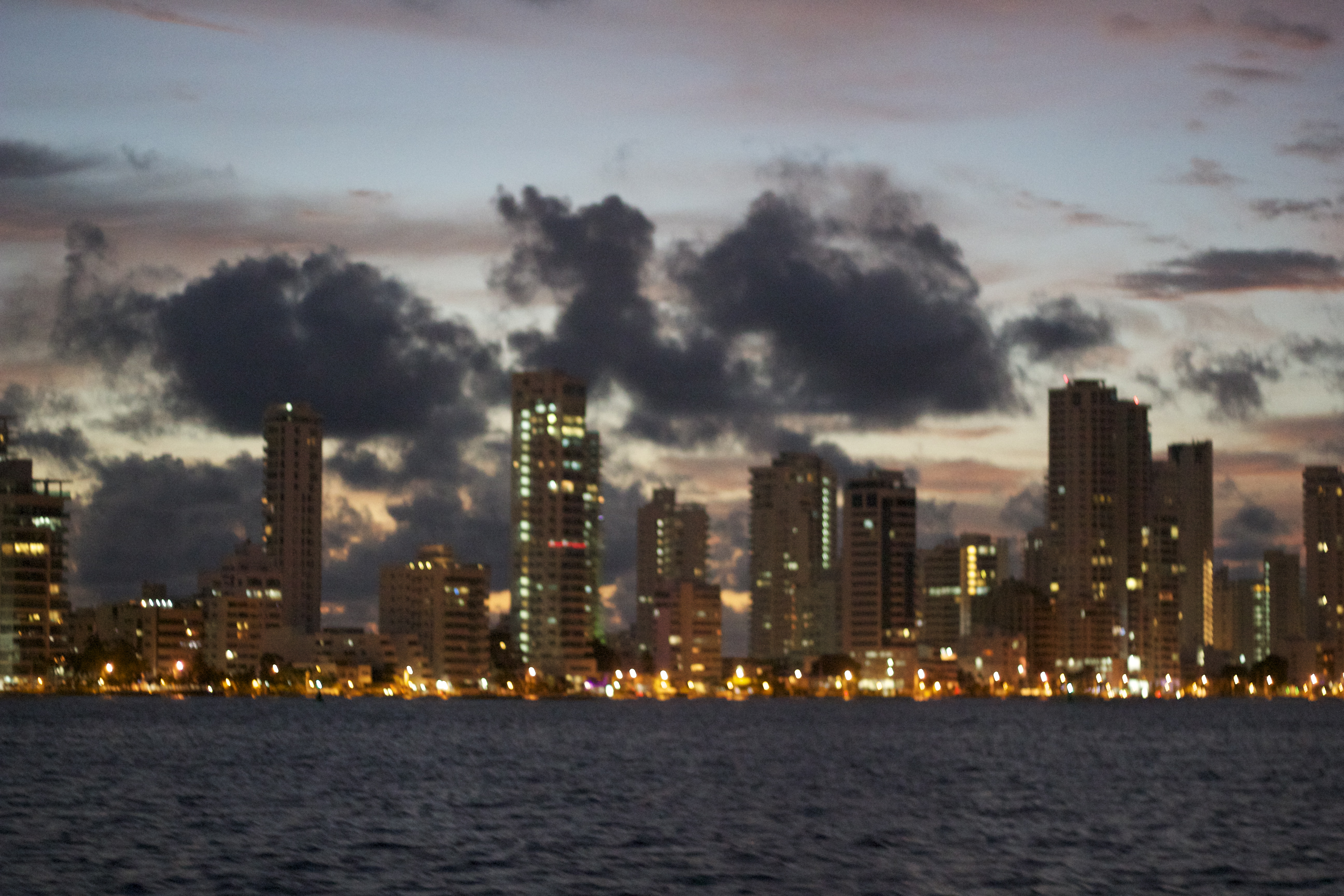 Salimos sobre las 5 de la mañana y llegamos a Cartagena cuando empezaba a anochecer. Cuando pudimos ver tierra en el horizonte casi no nos lo podíamos creer, nunca pensamos en desear tanto llegar a Colombia. Era oscuro y Cartagena brillaba como el paraíso al que todos teníamos prisa de llegar. Atrás se quedaba, lo que todos coincidimos en llamar lo peor de nuestros respectivos viajes.