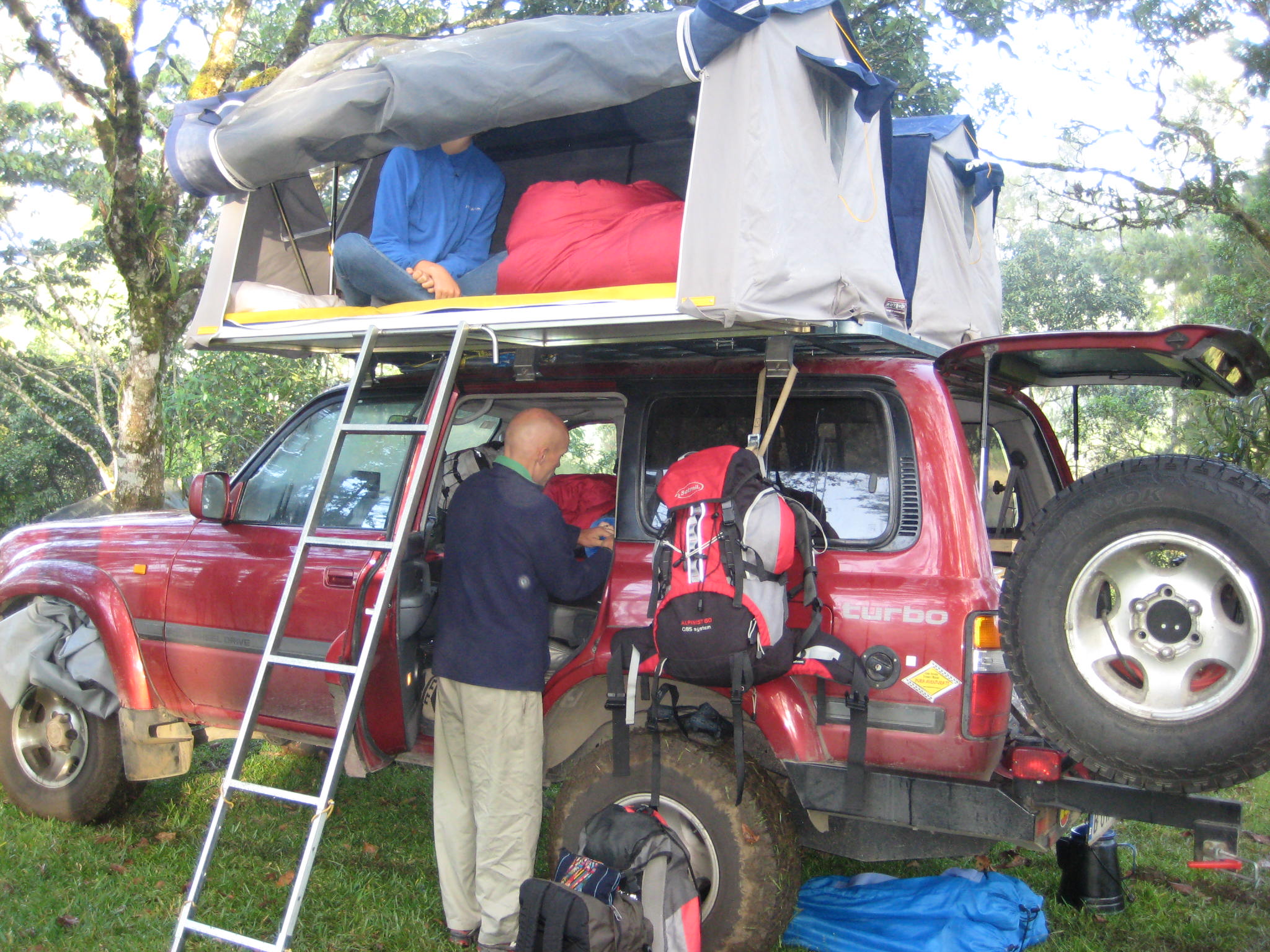 Also, we have had some thoughts on the apparent lack of safety of our ladder-accessible roof-tent compared to the hard-cover over a normal camper.