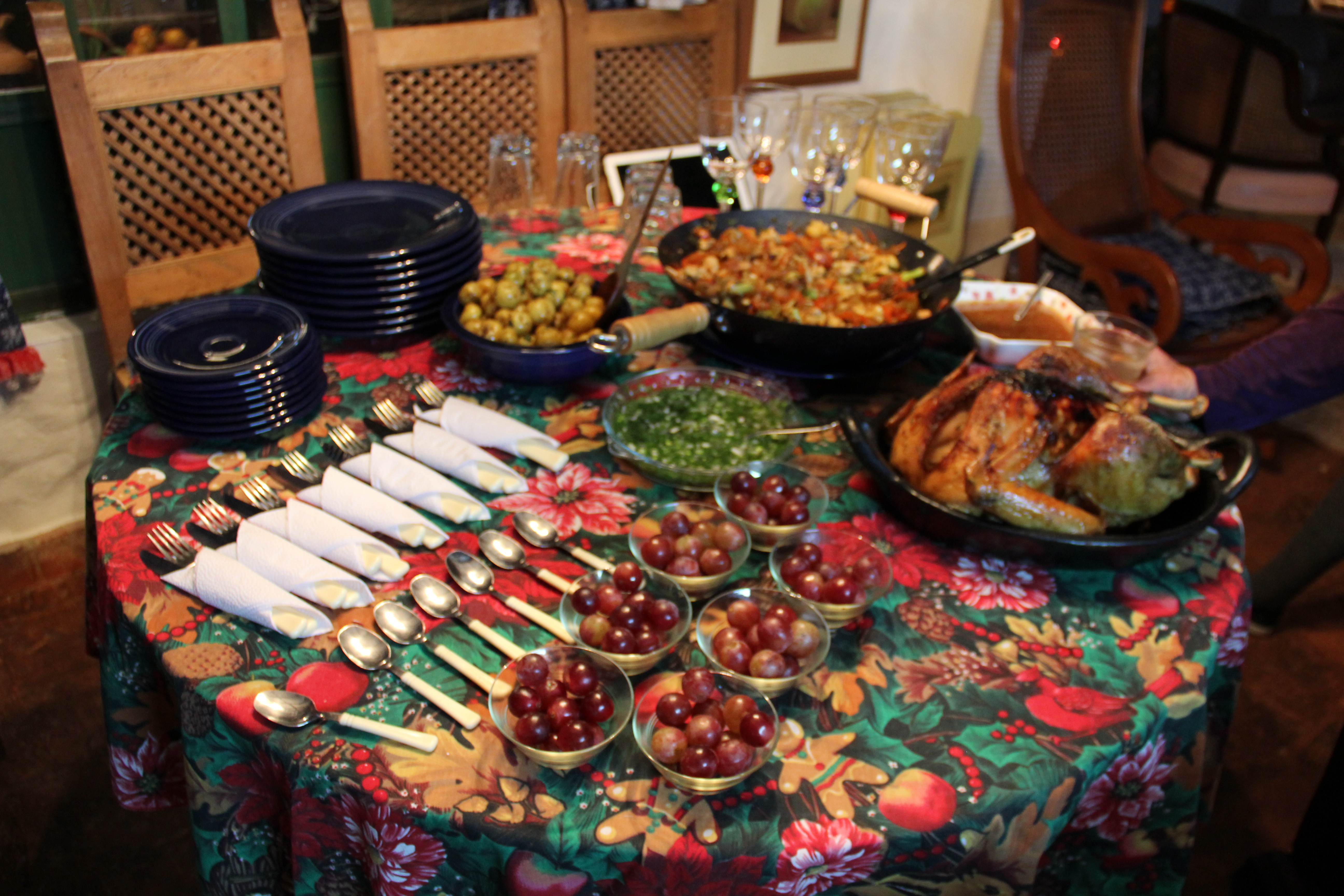 Una vez en Bogotá empezaron los acontecimientos sociales y las tradicionales novenas de Navidad. Amigos y familiares se reunen cada noche en diferentes casas durante los 9 dias previos a la Navidad y después de cantar y rezar delante del Belen, comen, beben y festejan. Al ir con lo mínimo en la mochila, tuvimos que pedir prestado el atuendo para ir mínimamente decentes  a las diferentes reuniones. Así que disfrazados de urbanitas y después de pasar por la peluquería, pudimos presentarnos en la sociedad bogotana sin ser tachados de “hippies europeos”. Novenas tuvimos varias: la de la vecina Flor, la de Carlos y la de su madre Cecilia, la del primo Tuto y la de las tías. Todas ellas con mucha gente y familiares, y como no, con abundante  y  deliciosas especialidades gastronómicas.