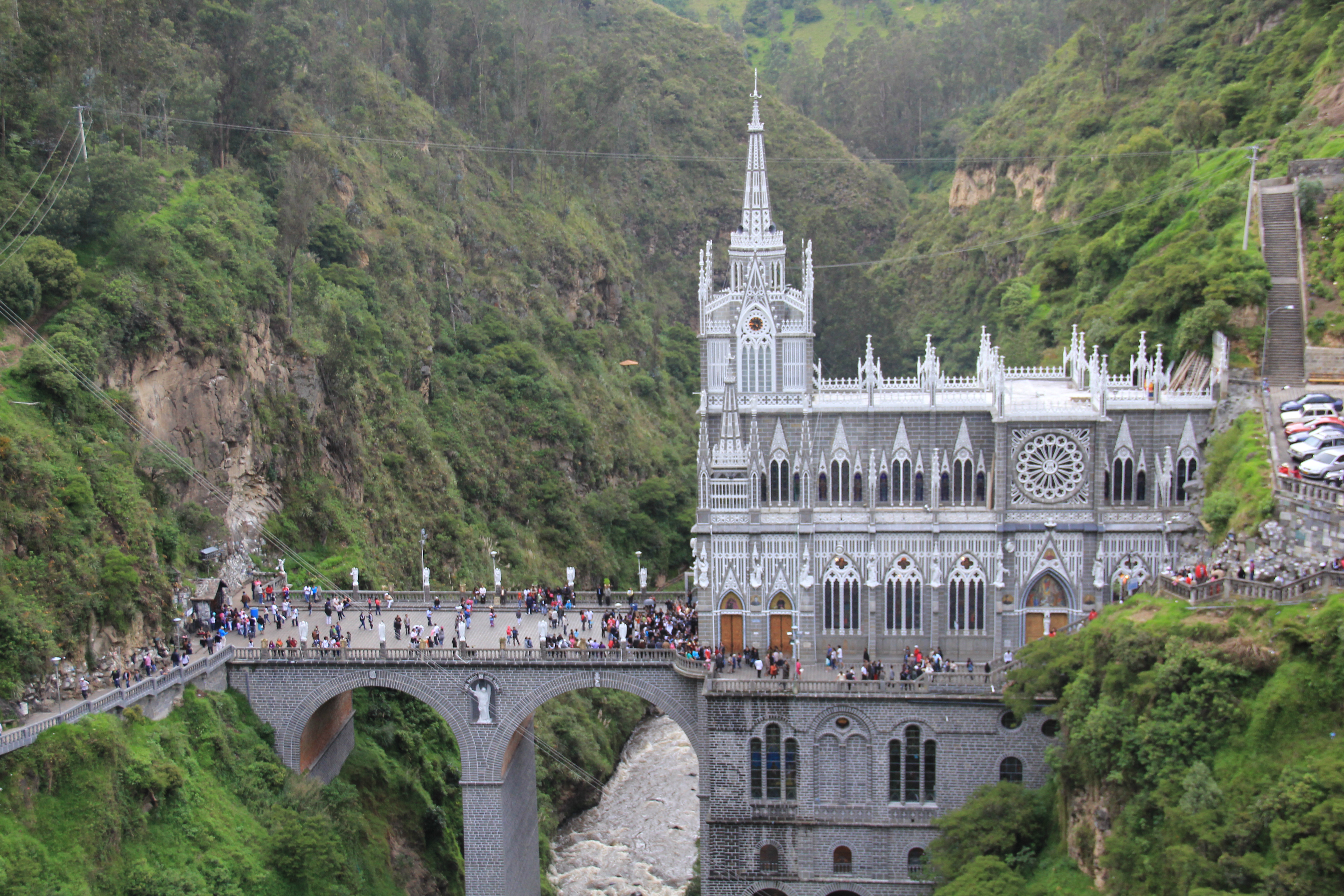 El siguiente día ya lo pasamos en Ipiales, a la frontera con Ecuador. Allá aprovechamos para visitar el Santuario de la Virgen de Lajas, dónde los devotos hacen peregrinaciones y supuestamente la virgen realiza milagros.