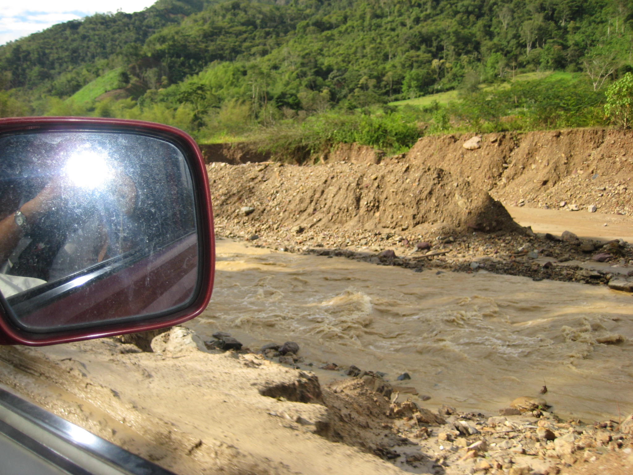 Después de liberar el coche de los trámites de aduana y habiendo repuesto fuerzas en Cartagena, nos tocaba coger rumbo hacia el sur. A causa de las lluvias intensas, (el fenómeno de “la niña” ha afectado mucho a Colombia en los últimos años), todas las carreteras estaban muy afectadas, con derrumbes e inundaciones. Tomamos la ruta que consideramos comportaba menos riesgos, que era la de Santander, pasando por Bucaramanga. El tramo de Cartagena-Bogotá lo hicimos acompañados de tres hermanos americanos que viajaban de California a Ushuaia en su propio coche. La verdad es que las carreteras estaban muy mal, habían cortes cada rato y el tráfico era infernal. Hicimos noche en   Aguachica, a una hora de Bucaramanga. Acampamos en una gasolinera donde los guardias de seguridad nos invitaron a abrir las tiendas y ha dormir con toda tranquilidad. ¿Quien iba a pensar hace unos años que esto iba a ser posible en Colombia? Seguramente nadie.