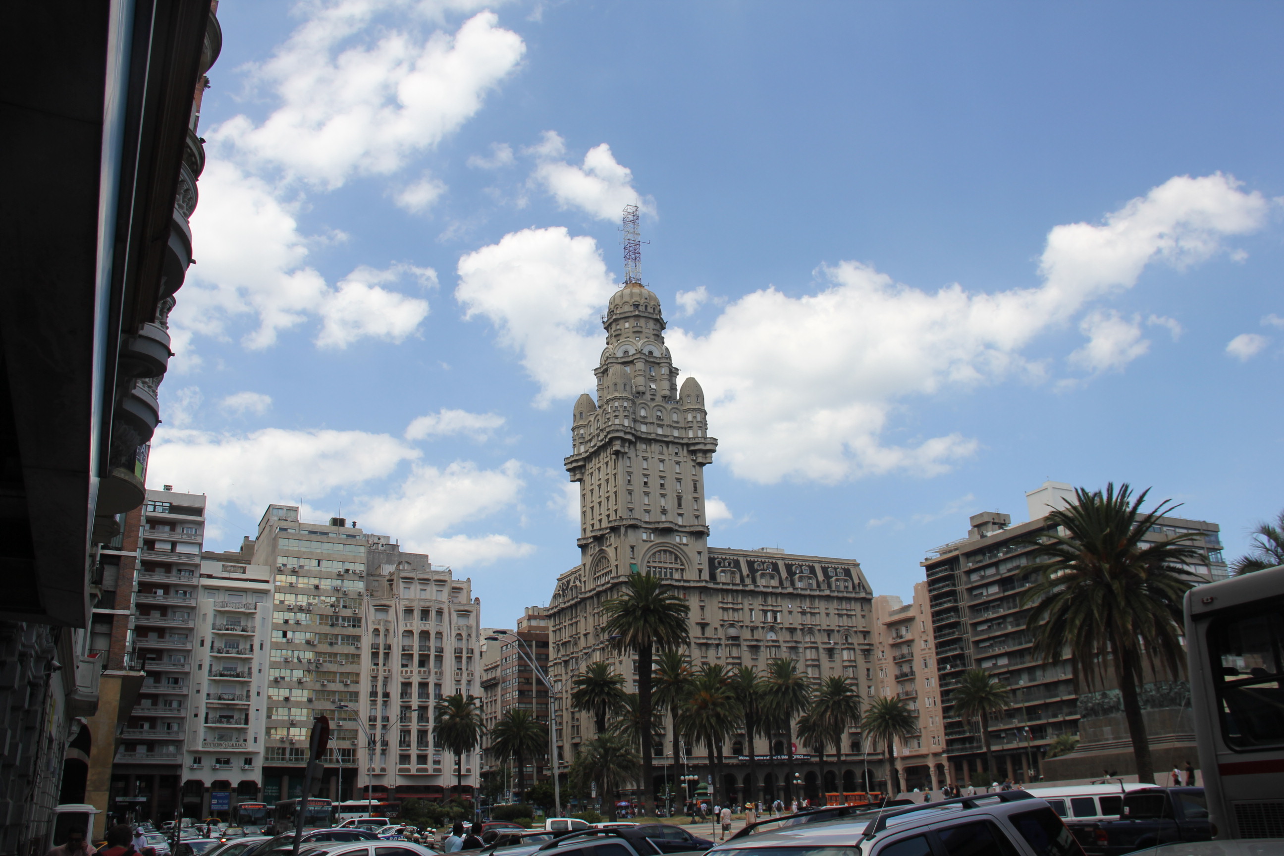 Siguiendo las instrucciones de nuestros amigos Jeanne y Santos de Mar del Plata, en vez de tomar el ferri de Buenos Aires a Montevideo, como habíamos inicialmente planeado, nos dirigimos hacia la frontera Uruguaya en Gualeguaychú. Nos llamó la atención que después de tantos pasos fronterizos, fuera en esta frontera en la única que nos inspeccionaran el coche completo con perros policía. Era tarde y paramos en una gasolinera a descansar. A Montevideo llegamos al día siguiente y cumpliendo estrictamente con el calendario de revisiones del coche, lo dejamos en el taller y nosotros nos fuimos a buscar un lugar para alojarnos en el centro. Caminamos mucho a pesar de que el calor era sofocante, aprovechamos para hacer gestiones por internet y sobre todo para decidir nuestro itinerario en la siguiente parte de nuestro viaje en Asia. Montevideo nos pareció una ciudad tranquila con un cierto aire europeo, de hecho caminando por sus calles, nos sentimos a veces trasladados a nuestra añorada Barcelona. Solo vimos el centro y parte del puerto al ir a comer al mercado el famoso churrasco uruguayo. Nos dimos cuenta de la dimensión real de la ciudad cuando salimos con el coche y pasamos barrios enteros de modernos edificios en primera línea de mar. Nos quedamos con ganas de ver más y explorar con más calma esta ciudad.