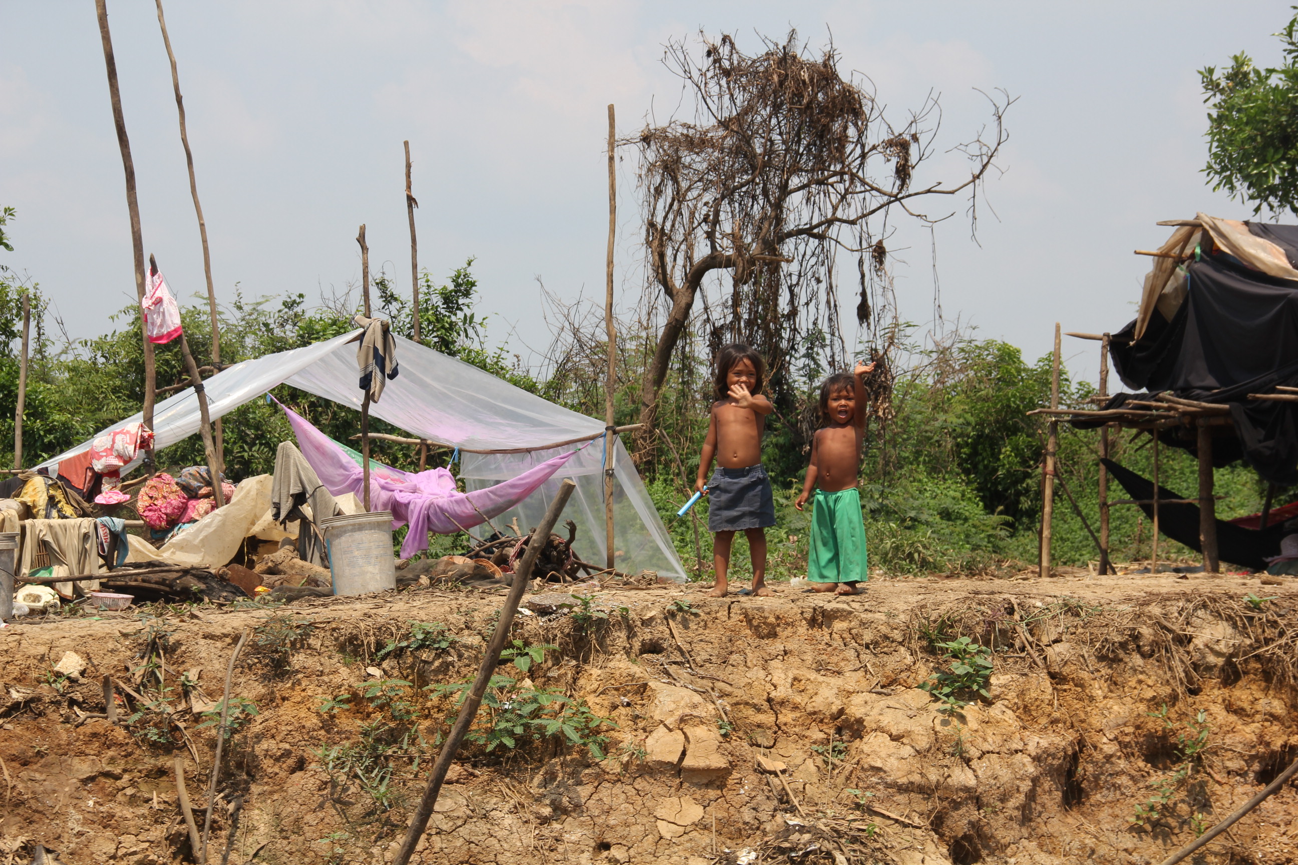 Niños jugando a la orilla del río