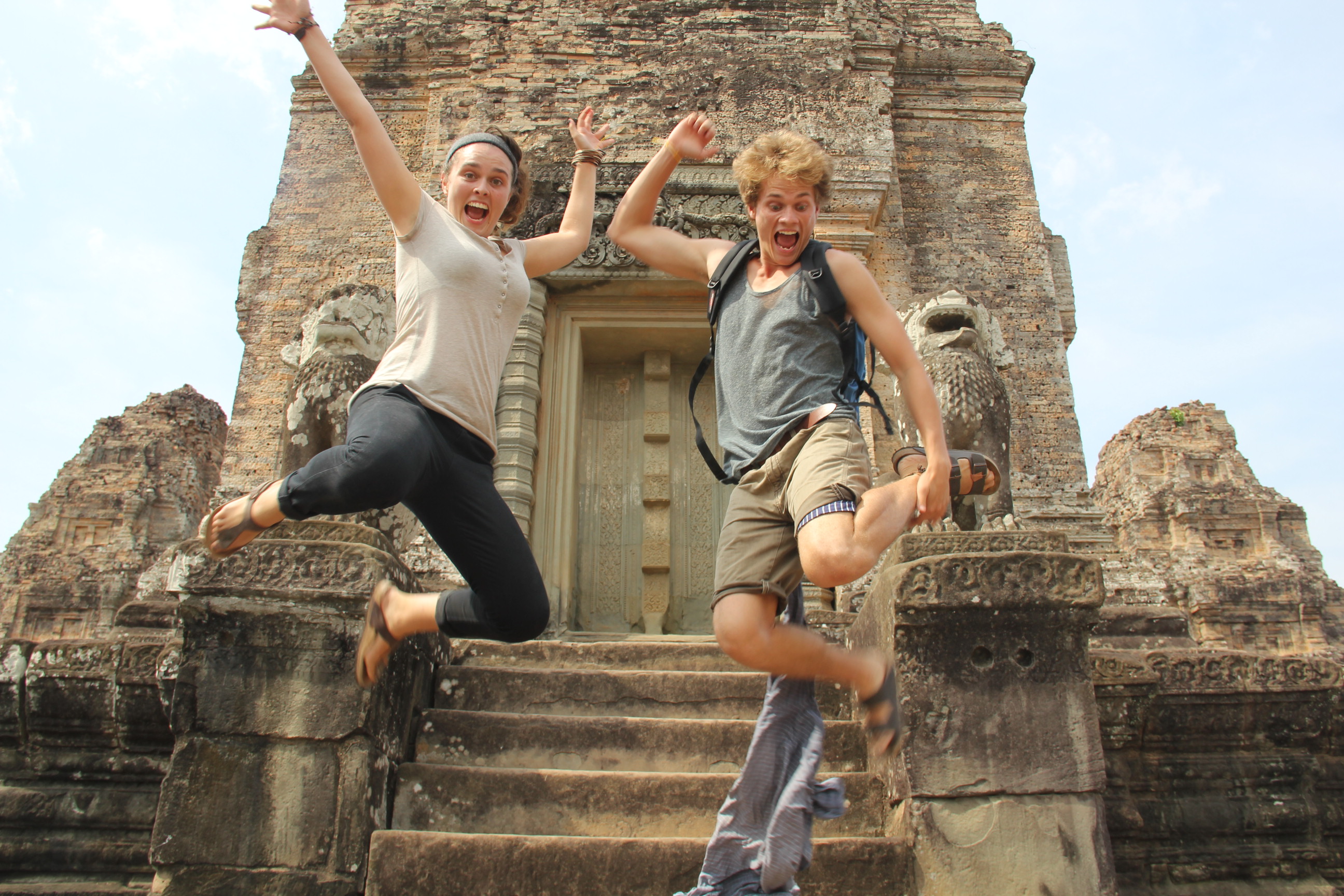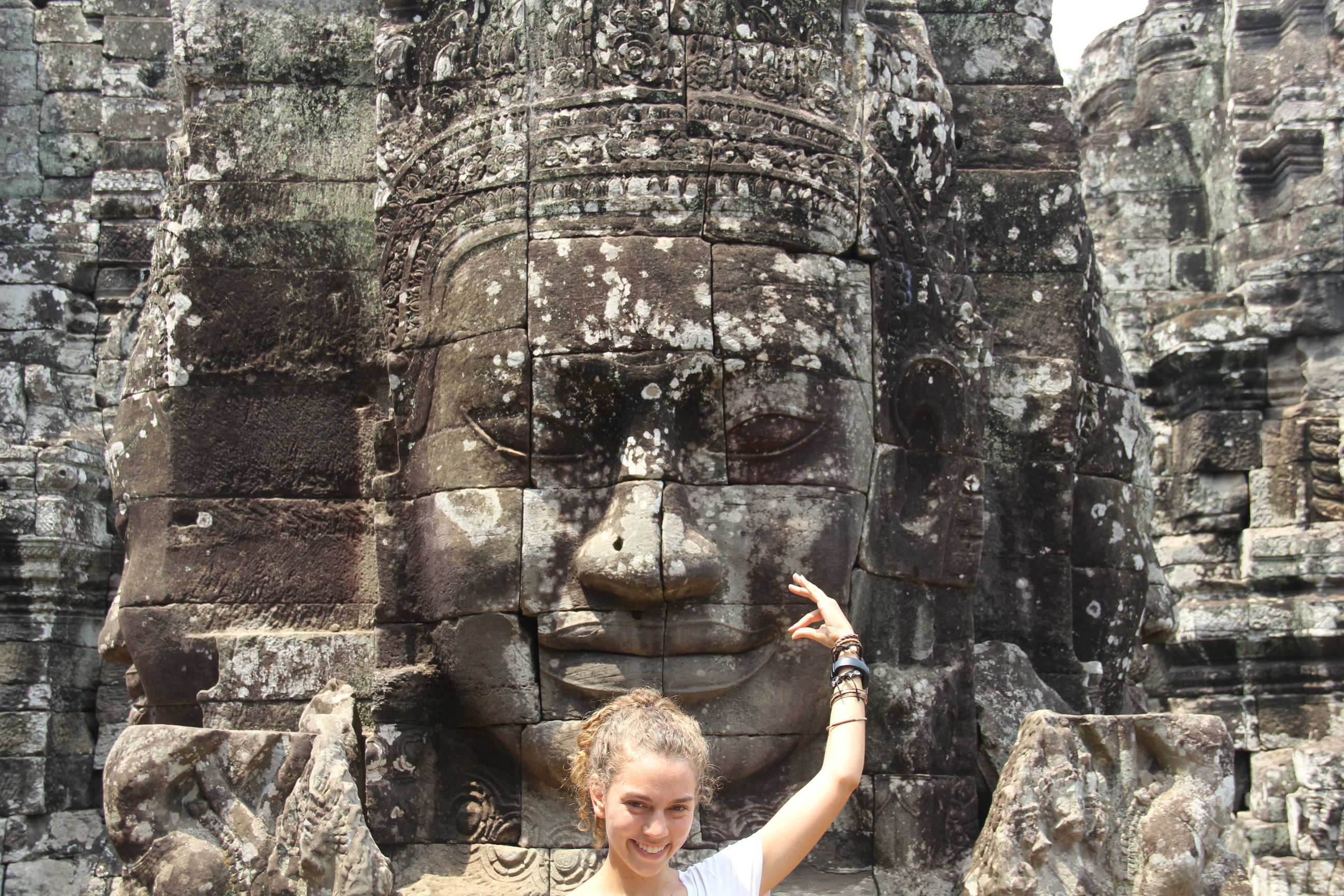 En Bangkok  visitamos lo obligado y enseguida tomamos un bus hacia la frontera con Camboya para llegar hasta Siem Reap,  la ciudad que esta al lado de las ruinas de los templos de Angkor. Mona se olvidó el pasaporte en el hotel y esto nos cuesta algunas horas de retraso en medio del tráfico infernal. El paso de frontera vuelve a ser muy interesante, es clara la diferencia de riqueza entre Tailandia y Camboya, siendo Camboya bastante mas pobre. Nos sorprenden las mujeres completamente tapadas para esconderse del sol, con el calor que hace!!!!. Los templos de Angkor los visitamos en dos días, un día en Tuk Tuks una especie de taxi asiático abierto  y el siguiente hicimos el recorrido en bicicletas alquiladas. Contemplar estas construcciones en medio de la selva nos produce una sensación similar a la de Machu Picchu, nos impresiona ver como dominaban el arte, la arquitectura y las matemáticas las antiguas civilizaciones. Con la ayuda de un guía pudimos entender un poco más la historia de Camboya, su gente y sus creencias: una fusión entre hinduismo y budismo.