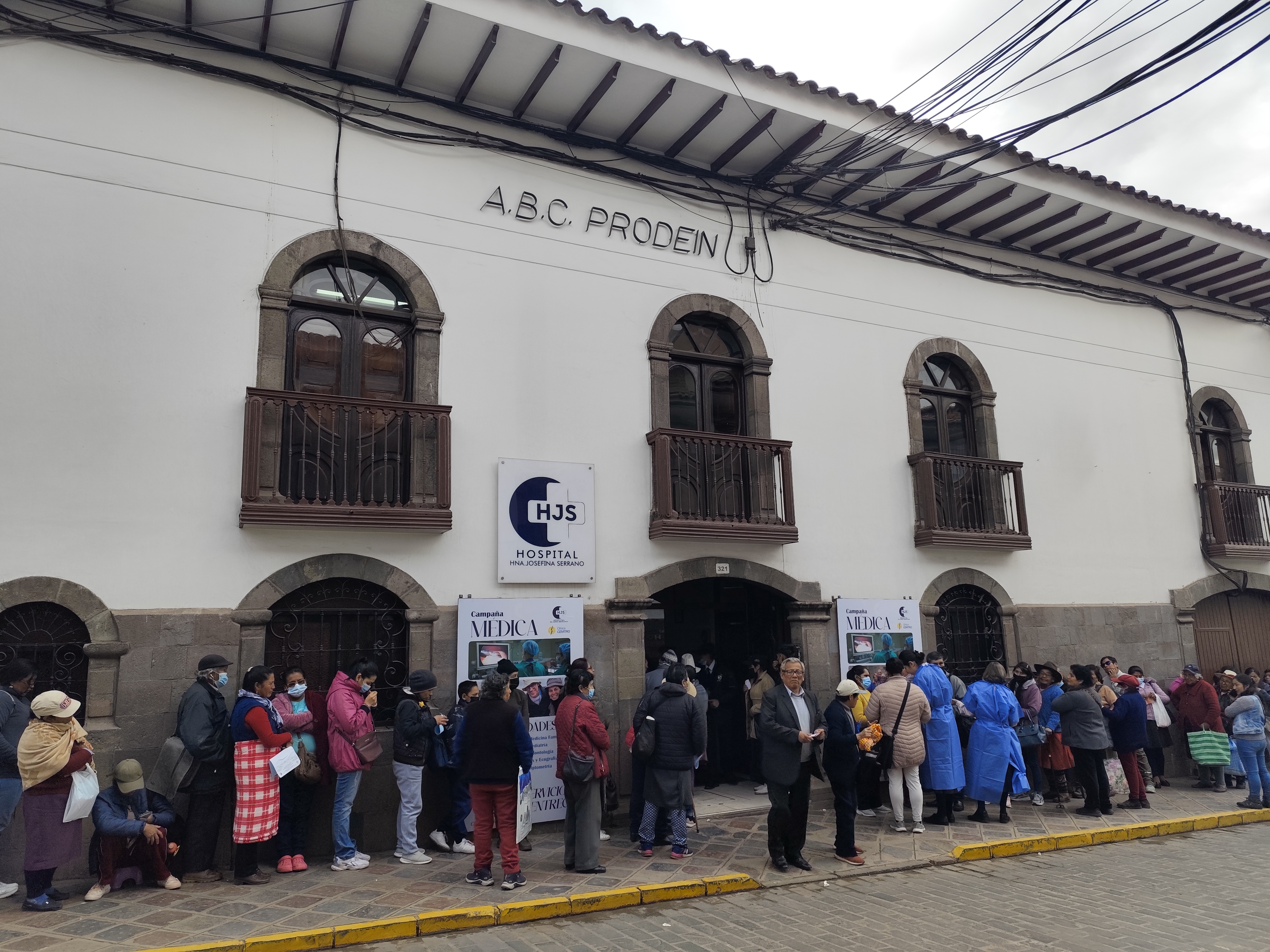 We arrived at the main entrance of the hospital at downtown Cusco – it was a long line and many people – a rather hectic and somewhat tense atmosphere to a hospital to be. And with a guarded entrance gate… Anyway, we managed to navigate ourselves to the gate and was let through based on the story that we were relatives of one of the doctors…. Suddenly I had graduated to be a “relative” – a well-intended white lie in this somber religious/health ambience – but of course, the objective justifies the means… At least we got inside in the shade of the crowded foyer.