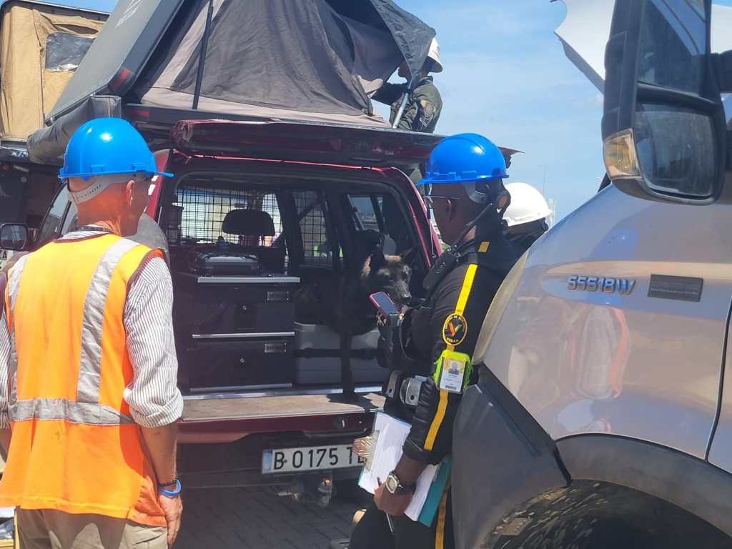 After well an hour’s inspection of the 10 or so vehicles, the customs officers and the dog fortunately did not find any drugs. We all left relieved that the exercise was over, and dripping of sweat we exited the guarded port area, redelivered the obligatory safety-west, helmet and safety shoes, and returned to Cartagena in the freight forwarder’s car. The job was done, and the vehicles are now on the way back to Europe.